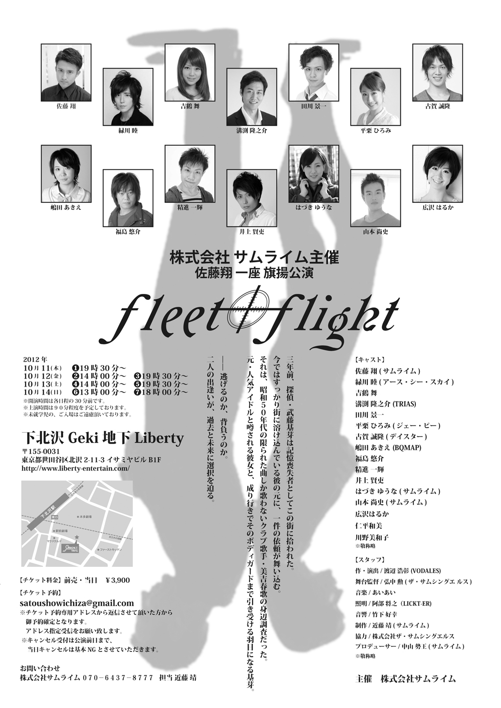 出演:佐藤翔(サムライム)、緑川睦(アース・シー・スカイ)、吉鶴舞、溝渕隆之介(TRIAS)、田川景一、平栗ひろみ(ジェー・ピー)、古賀誠隆(デイスター)、嶋田あきえ(BQMAP)、福島悠介、精進一輝、井上賢吏、はづきゆうな(サムライム)、山本尚史(サムライム)、広沢はるか、仁平和美
